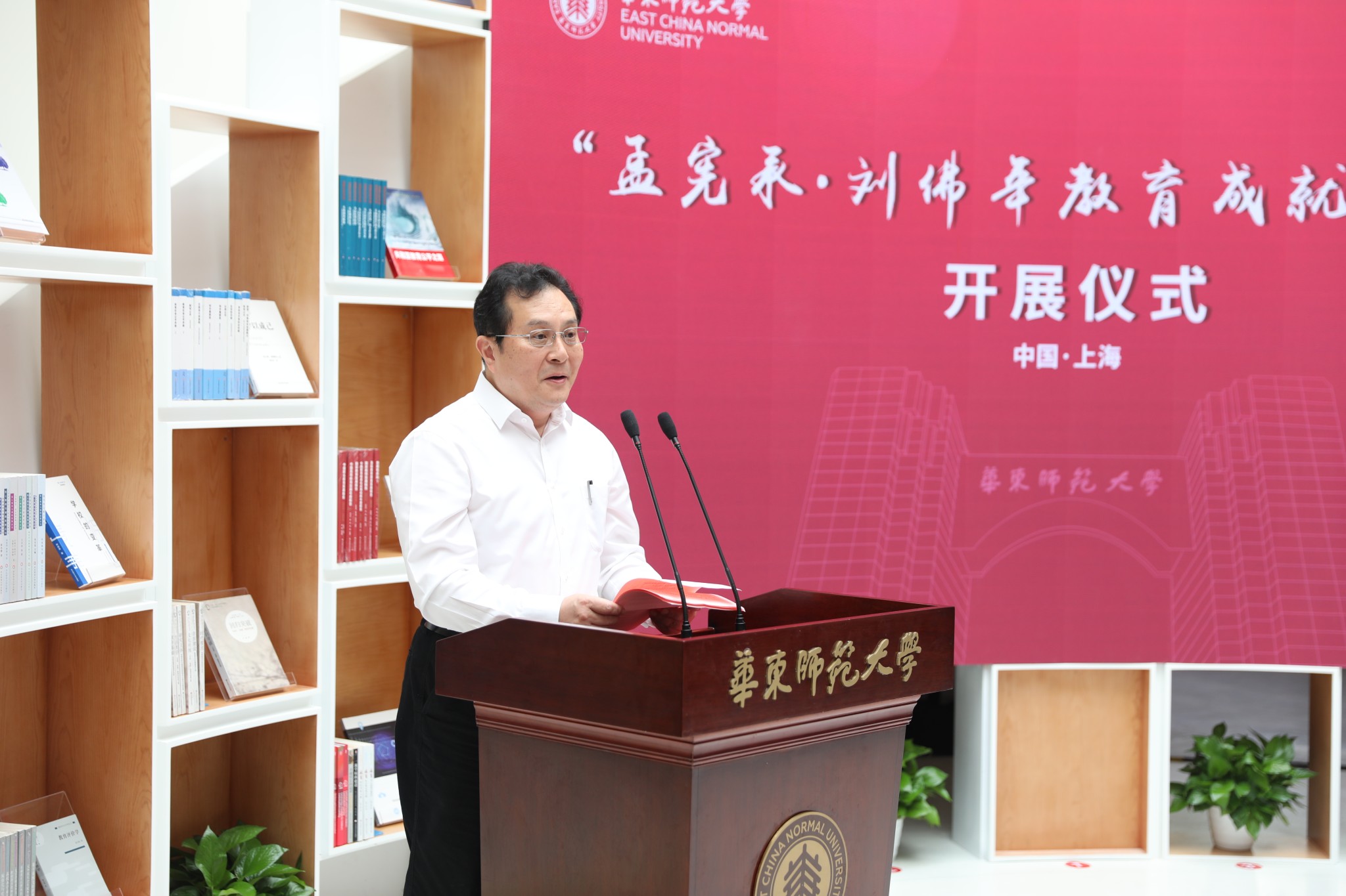上海市委宣傳部副部長徐炯、市教衛工作黨委書記沈煒、市社聯黨組書記王為松、孟憲承先生弟子代表江銘、劉佛年先生弟子代表顧泠沅、華東師大黨委書記梅兵和校長錢旭紅一同為陳列室揭牌。