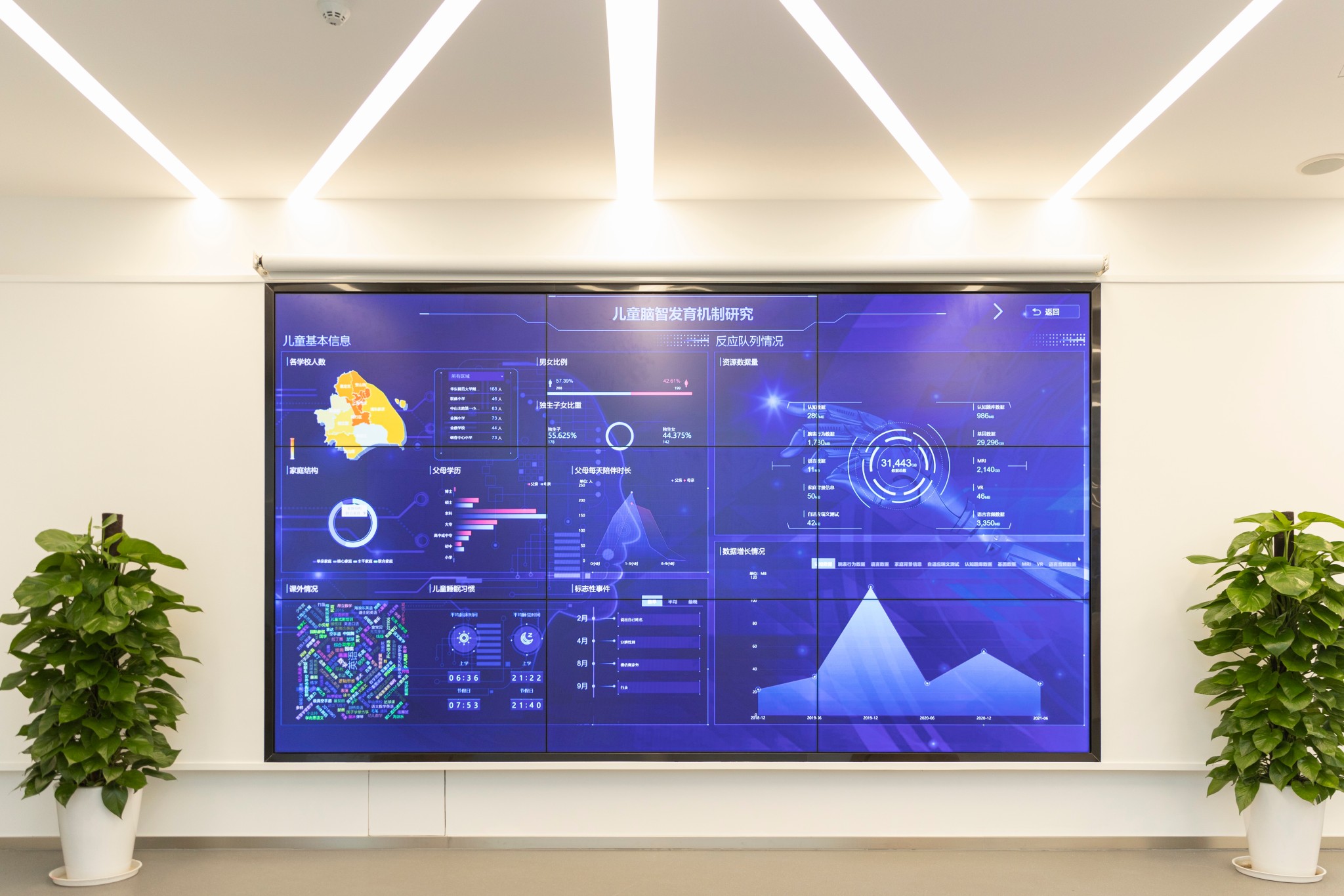 值得一提的是,從陳列室沿旋轉樓梯而上,二樓便是卓越學術沙龍,這里匯聚了華東師大最新的人文哲社科研成果。如創新發展展區以大屏展示華東師大智能教育、城市創新、數據科學創新成果,公共服務區為日常學術研究活動提供便利,專業服務區包含數據銀行、數據密室等數據存取終端。