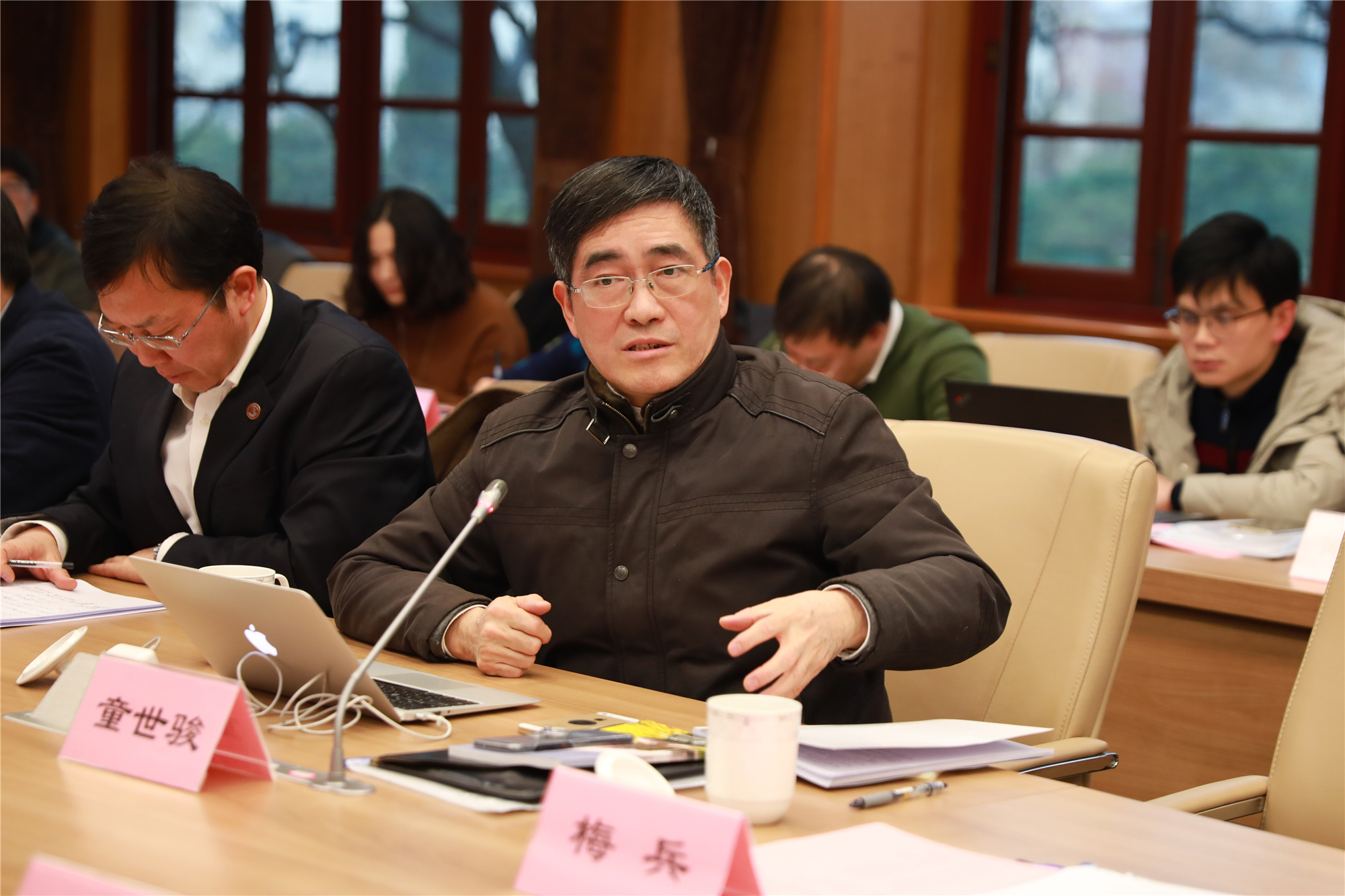 副校長汪榮明首先講話。他從項目立項、成果獲獎、成果轉化、平臺建設、科研經費等方面肯定了我校2018年在文科科研方面所取得的進展,并結合近期中央和上級部門精神,就各基地如何在下一輪基地評估中取得突破提出了希望和建議。他指出,黨和國家高度重視哲學社會科學,學術發展環境空前良好,“十三五”基地建設規劃進程過半,已經到了攻堅時期,各基地要抓住難得的歷史機遇,既要不忘初心,不忘基地成立時的使命擔當,也要把目光放長放遠,緊跟時代步伐,肩負起加快構建中國特色哲學社會科學的偉大使命。