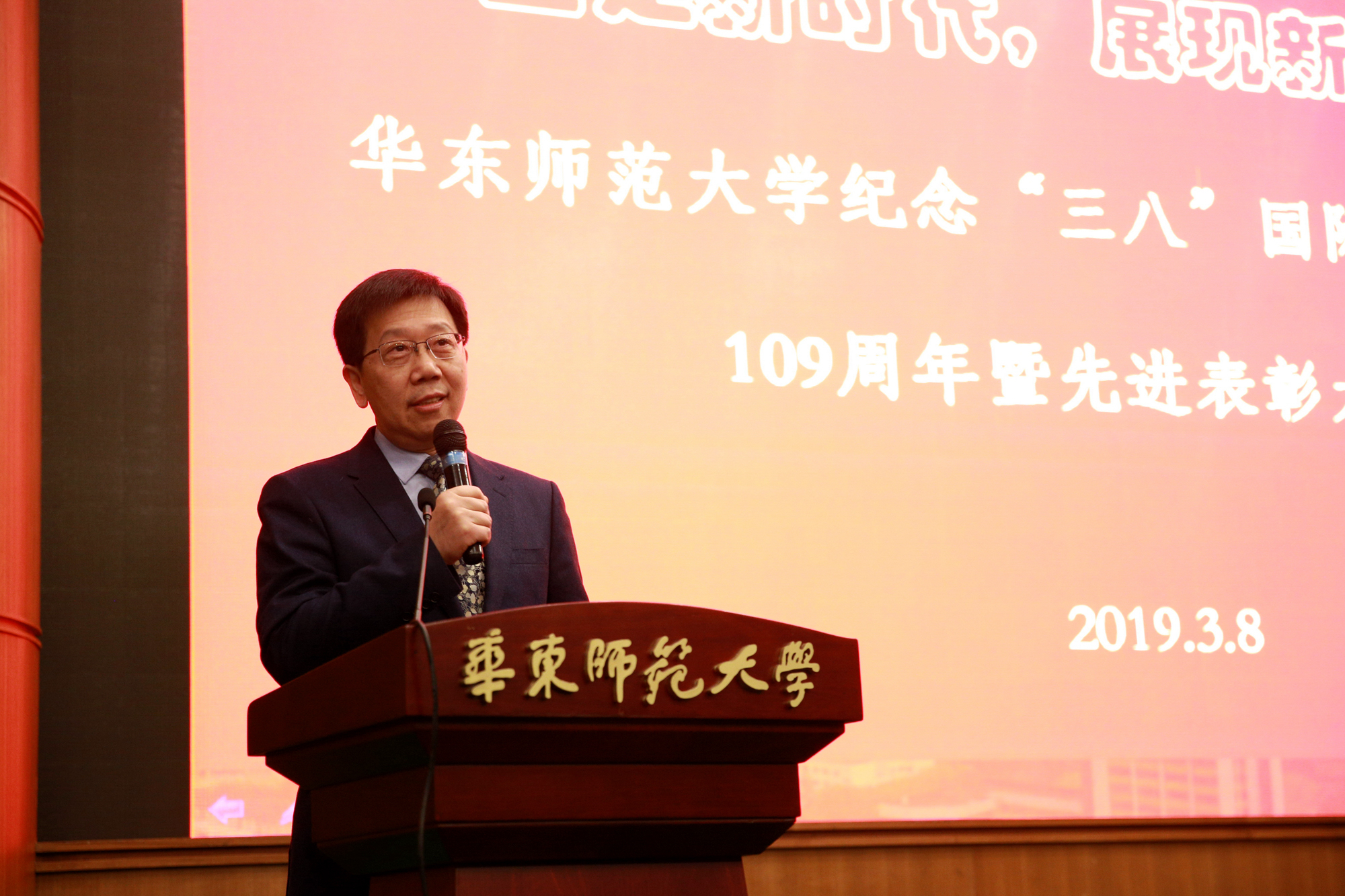 表彰大會上,女同胞們也收到了華東師大校長錢旭紅的祝福。他說,華東師大發展到今天,離不開女同胞們作出的杰出貢獻。從女性身上激發出來的對人類、對社會、對國家的大愛,是社會不斷前行的重要動力,希望大家能將這份“大愛”精神發揮得更大。他還代表學校黨委行政,恭賀“女神們”節日快樂,希望大家能夠度過輕松愉快的一天。