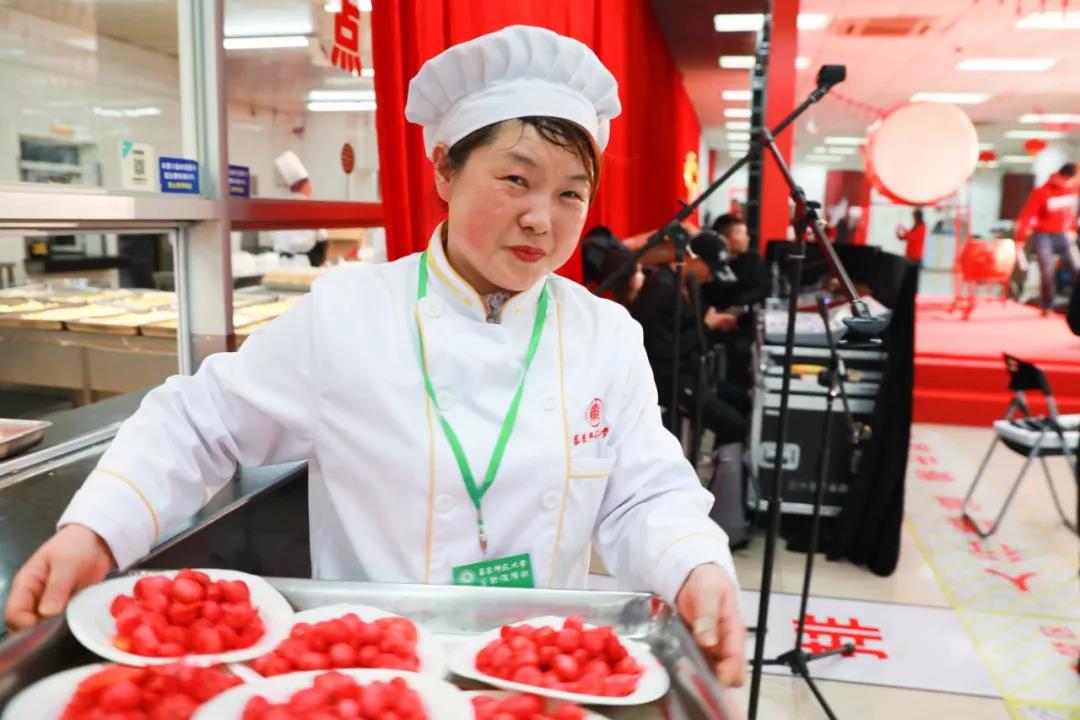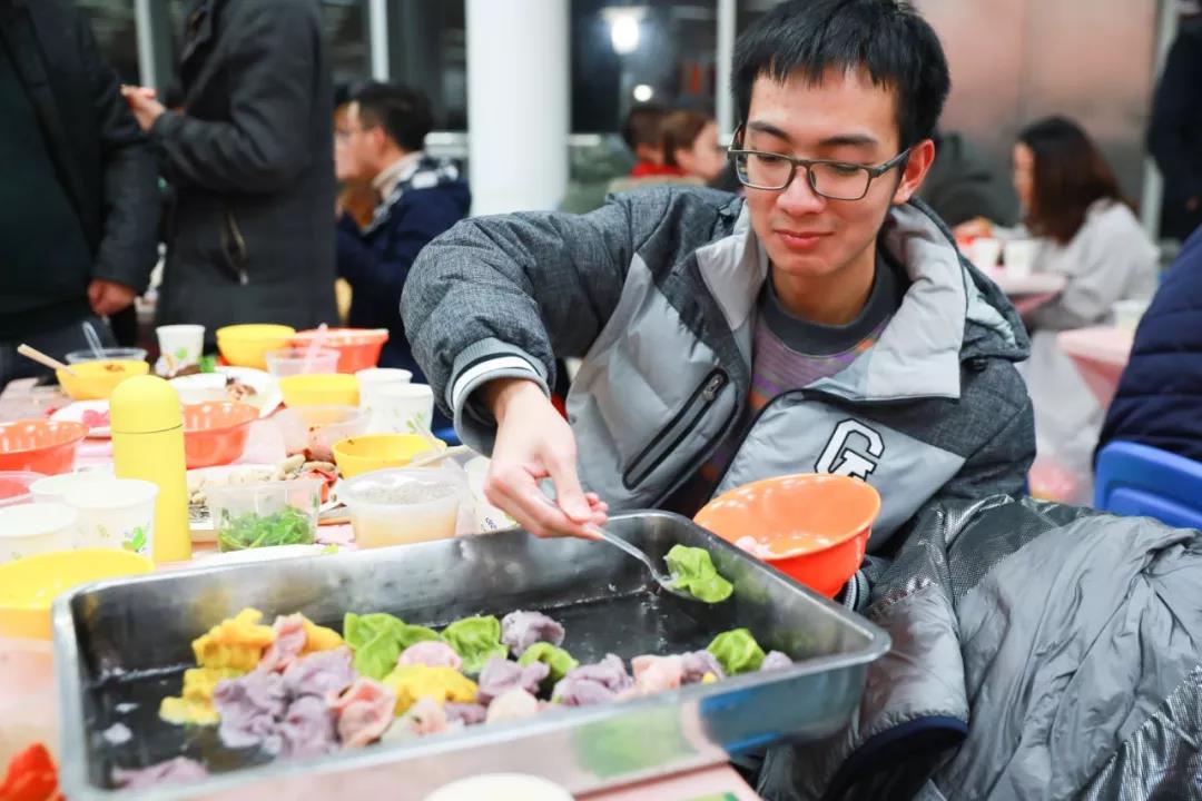 這邊精彩的節目輪番上演,那邊后勤員工與志愿者們已經將熱氣騰騰的餃子送到了大家面前。作為中華民族的傳統食物,餃子有著獨特的文化內涵,而師大特色“彩虹餃子”更飽含了新年五彩斑斕的美好寓意。由食堂大廚親手剁餡搟皮包的近萬只餃子,讓同學們品嘗到的不僅是舌尖上的美味,更是家的溫暖。大家吃著餃子,暢想來年,洋溢著中國傳統佳節的喜慶。