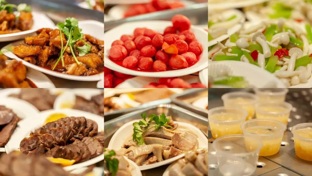 八寶飯、咸草雞、本幫熏魚、櫻桃蘿卜、五香牛肉、碧綠白玉菇、蓮子銀耳羹
