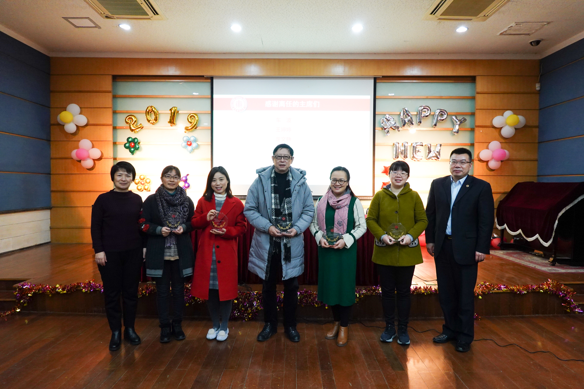校領導孫真榮、梅兵為2018年度校先進“教工小家”頒獎