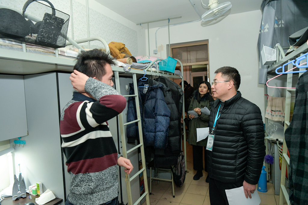 按照學(xué)校《關(guān)于做好2019年寒假期間有關(guān)工作的通知》要求,為切實(shí)做好寒假期間的校園安全工作,及時(shí)排查學(xué)生宿舍生活園區(qū)可能存在的安全隱患,1月17日晚上,學(xué)生工作部、后勤保障部、保衛(wèi)處三部門同志分別在余佳、趙健、任開蕾等帶領(lǐng)下,分多路對兩校區(qū)學(xué)生宿舍、生活園區(qū)開展安全檢查。