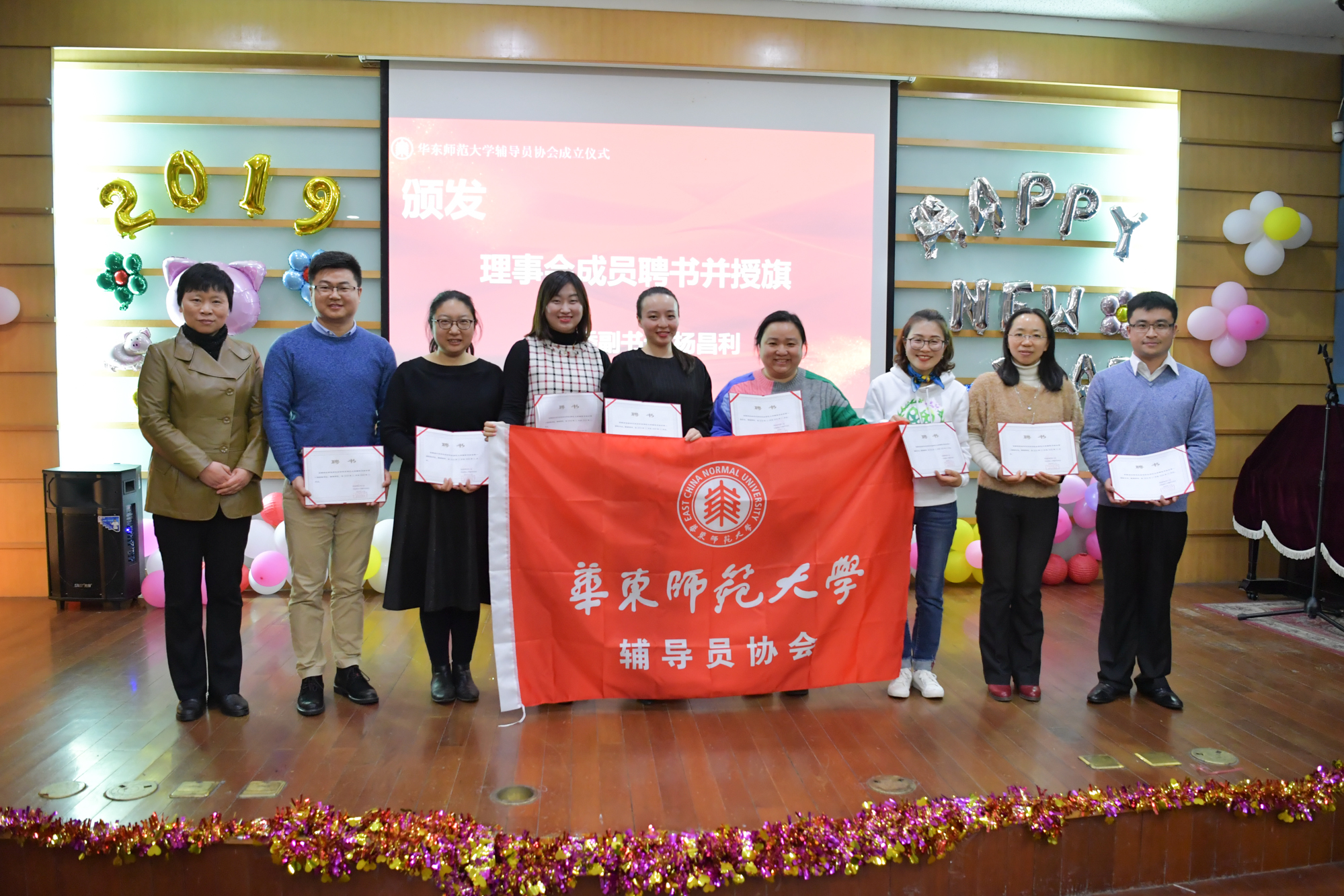 1月4日下午,2019年學工新年聯歡會暨華東師大輔導員協會成立儀式在中山北路校區工會小禮堂舉行。校黨委副書記楊昌利,校工會副主席李小英,學工黨委書記、學工部部長余佳,大學工各部門及各學部、書院、院系所學生工作負責人,全體輔導員、大學工工作人員等全體學生工作同仁們歡聚一堂,共同慶祝輔導員協會的成立和新一年的到來。