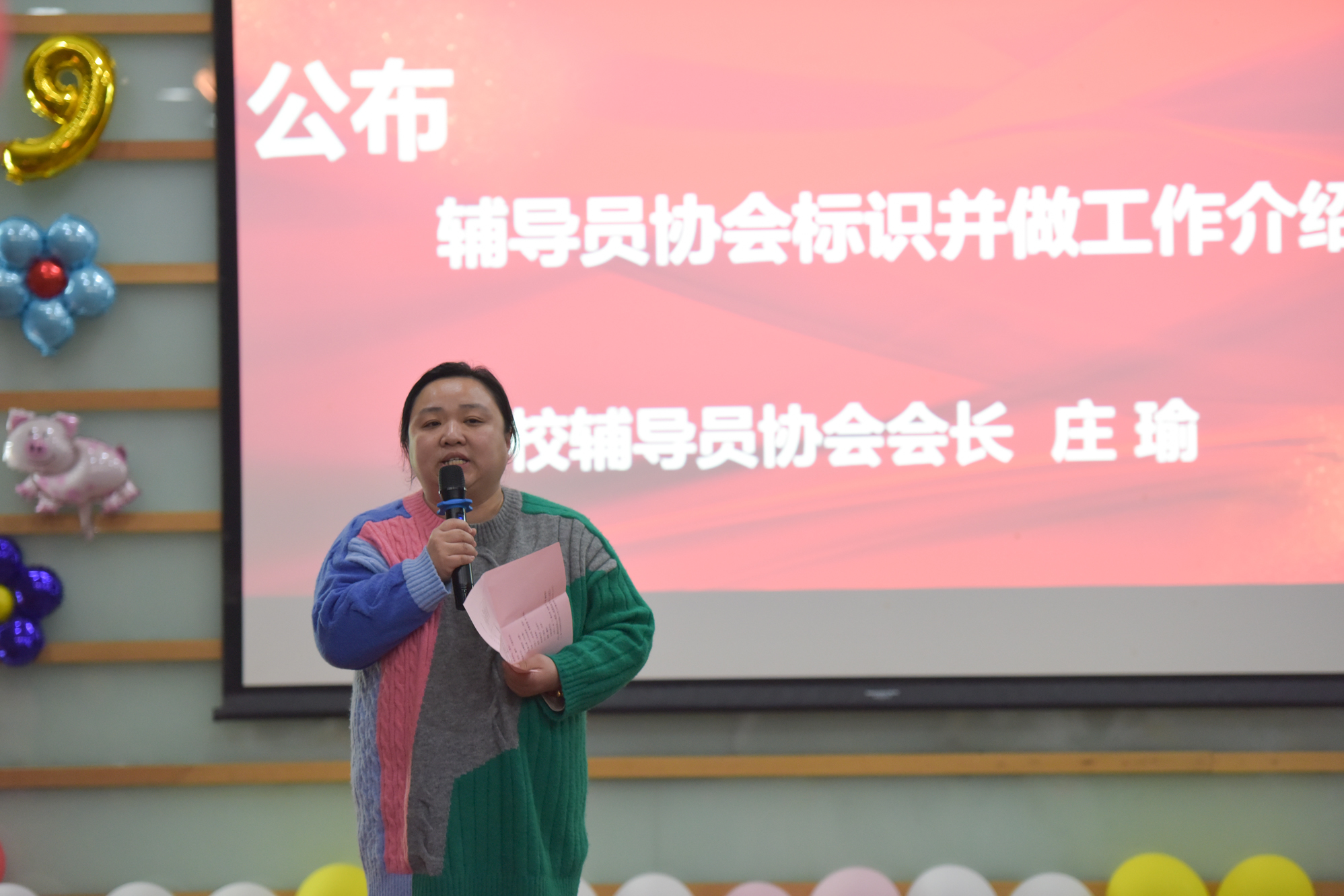楊昌利向輔導員協會第一屆理事會成員頒發聘書,授予會旗并講話。她首先對全體學工團隊所有人這一年來的付出和努力給予了高度肯定,并結合自己曾經的輔導員經歷以及現在分管學生工作的經歷和大家分享了自己的心得體會,并對協會和全體學生工作者提出了殷切希望。
