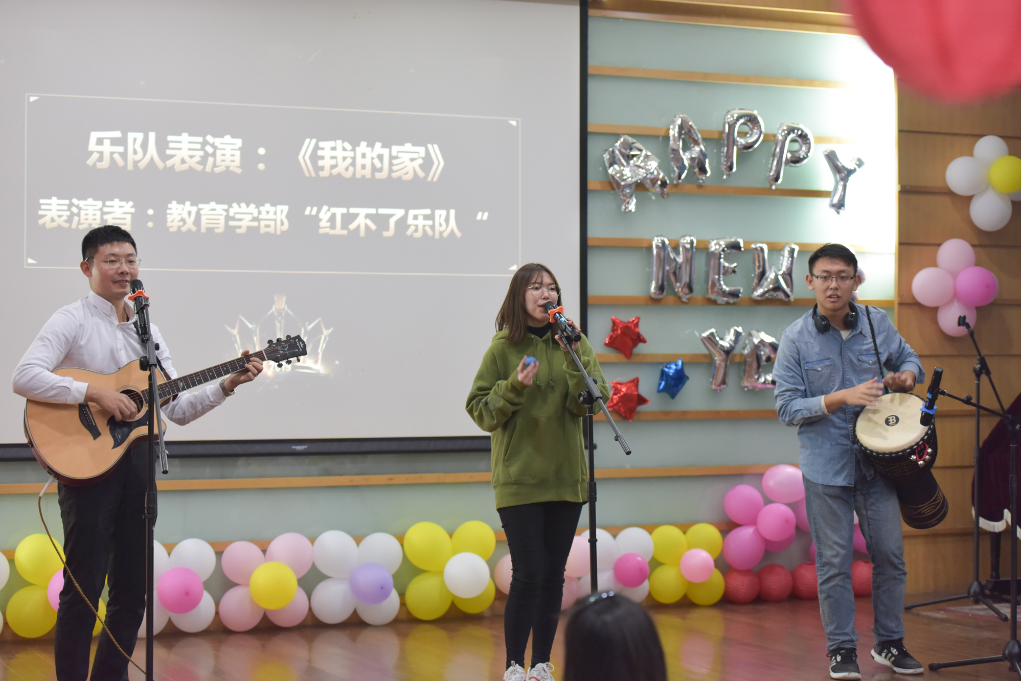 聯歡會上,“紅不了”樂隊一首《我的家》以舒緩輕盈的歌聲勾起對家的思念。心理與認知科學學院師生帶來的合唱《我喜歡》,唱出了溫暖和感動,也唱出了濃濃的師生之誼。祖國的強盛讓每一個中國人都感到自豪,大學工各部門負責人帶來的《我和我的祖國》,深情表達了對祖國的熱愛。