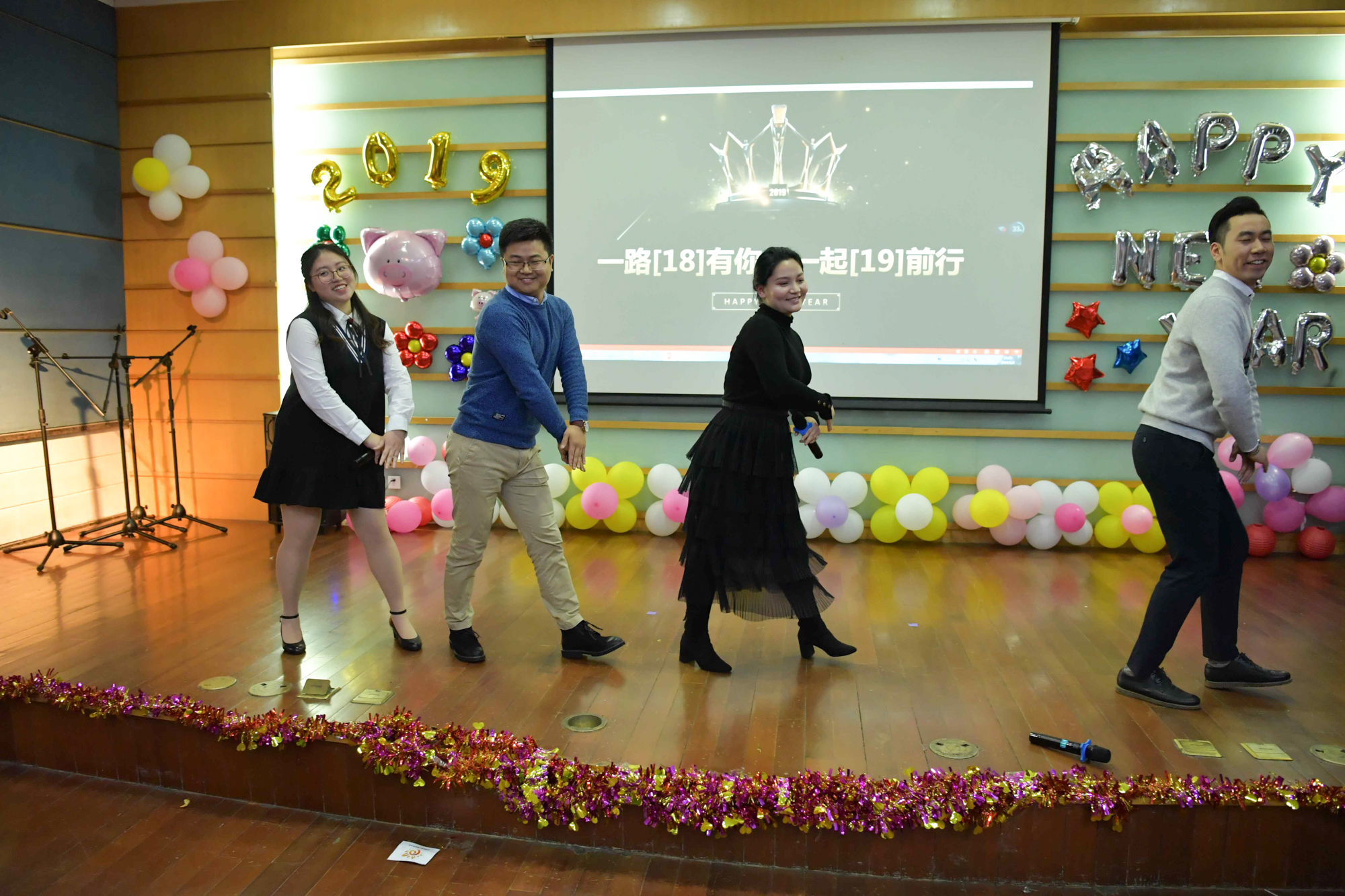 在最后的彩蛋——四位主持人“優美”的舞姿中,2019年學工新年聯歡會落下了帷幕。聯歡會全程歡聲笑語不斷、氣氛熱鬧非凡,為所有學工人送上了新年的問候。