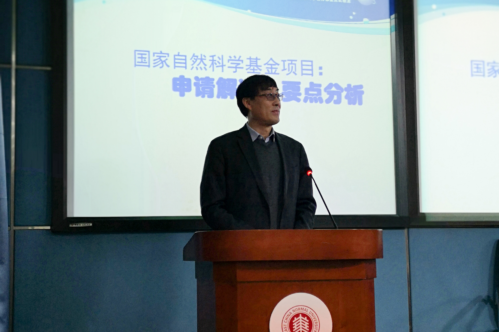 除此之外,在兩校區的動員大會中,科技處還邀請了來自地理科學學院劉敏教授、化學與分子工程學院楊海波教授和張中海研究員、精密光譜科學與技術國家重點實驗室蔣燕義研究員,他們分別從專家和申請者的角度,分享了基金申請書撰寫的經驗及評審要點,并提出了切實有效的建議。會后,現場教師與專家們進行了交流互動,氣氛熱烈。