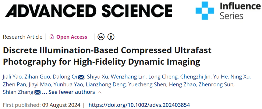 近日,華東師范大學精密光譜科學與技術國家重點實驗室齊大龍研究員、張詩按教授團隊在高保真實時超快成像技術研究方面取得重要進展。相關研究成果以“Discrete illumination-based compressed ultrafast photography for high-fidelity dynamic imaging”為題,于2024年8月9日在線發表于國際頂級學術期刊Advanced Science(IF=14.3)。