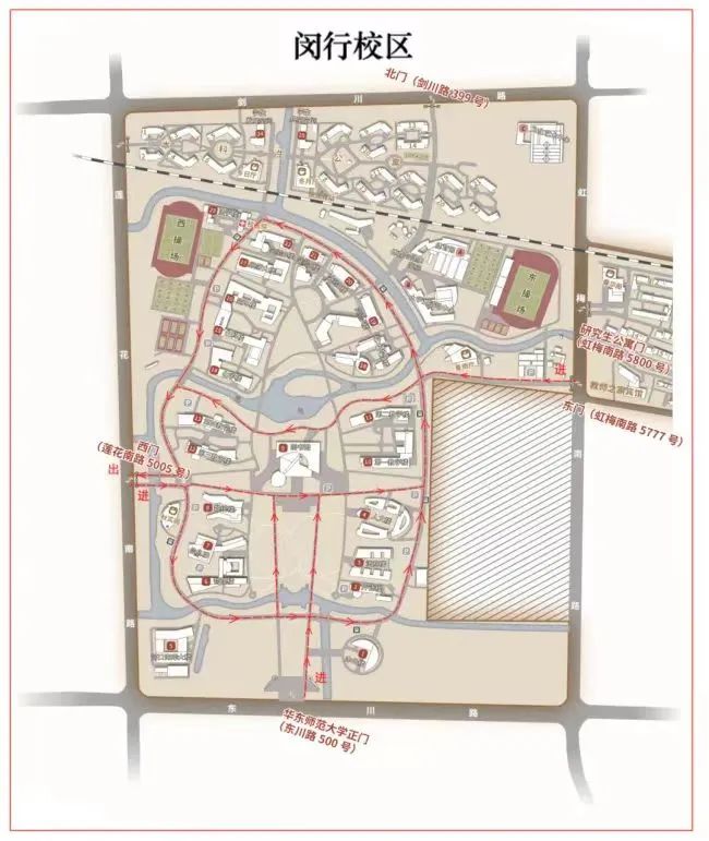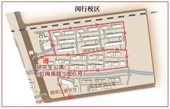 1. 8月30日、9月6日7:00起,閔行校區將實行入校機動車輛的單向流動行駛。