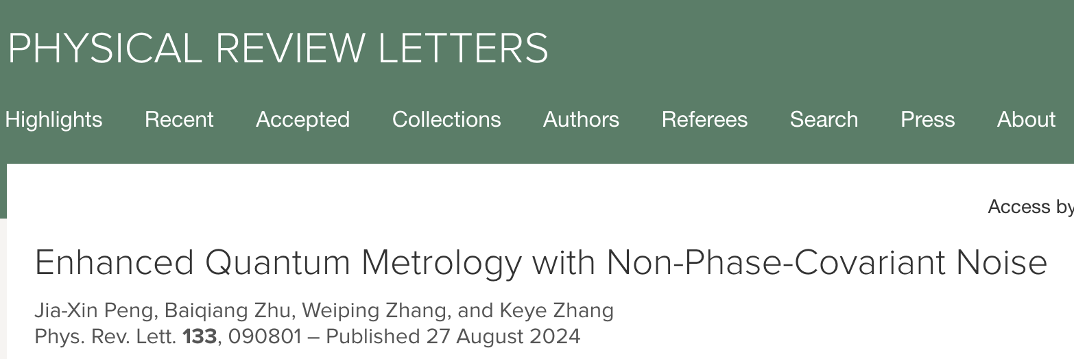 《Physical Review Letters》 刊登張可燁教授團隊用噪聲增強量子精密測量的科研成果