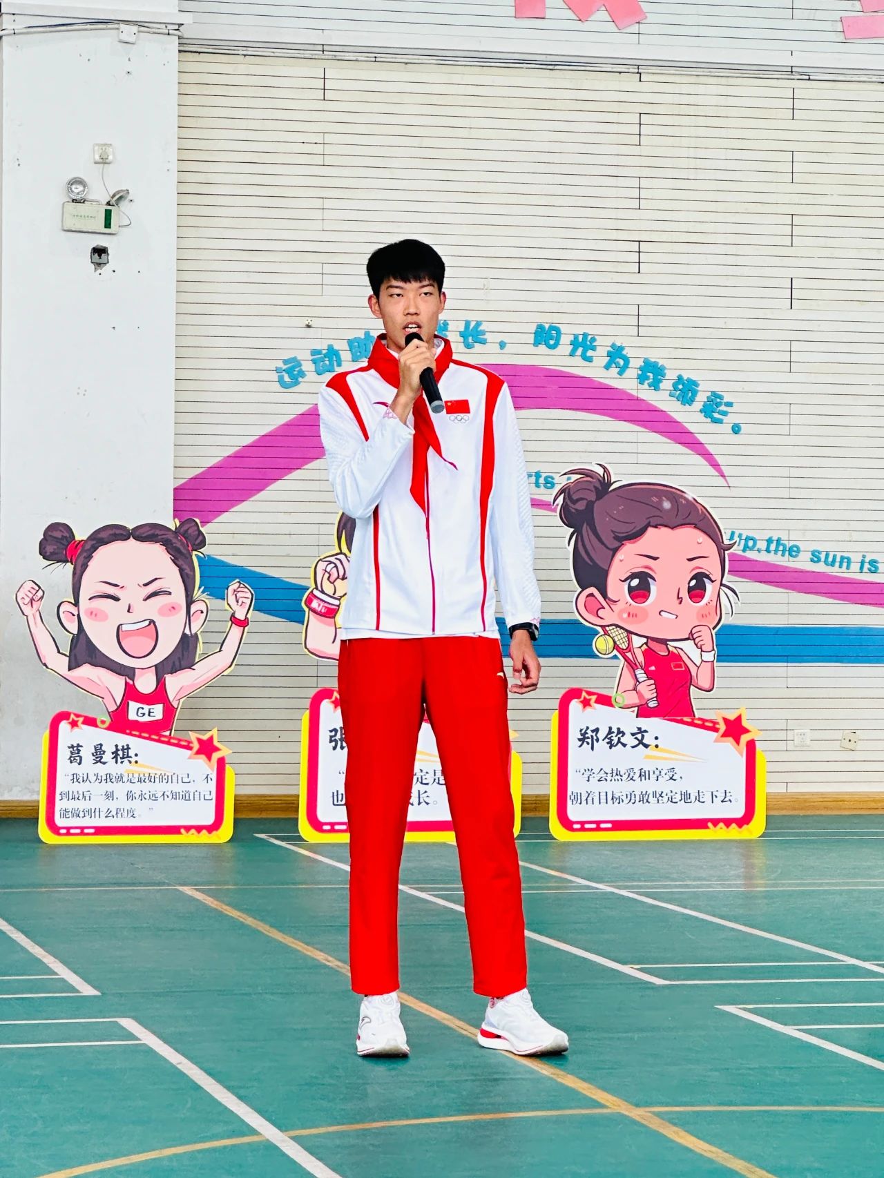 被譽(yù)為“亞洲女飛人”的葛曼棋與學(xué)生們分享了自己為何選擇田徑作為自己的人生道路。“在很小的時候,我就從電視機(jī)前認(rèn)識了第一位田徑偶像——劉翔。他在雅典奧運會上奪冠的那一刻,我被深深地震撼了。我也夢想能夠像劉翔一樣,為國爭光。”