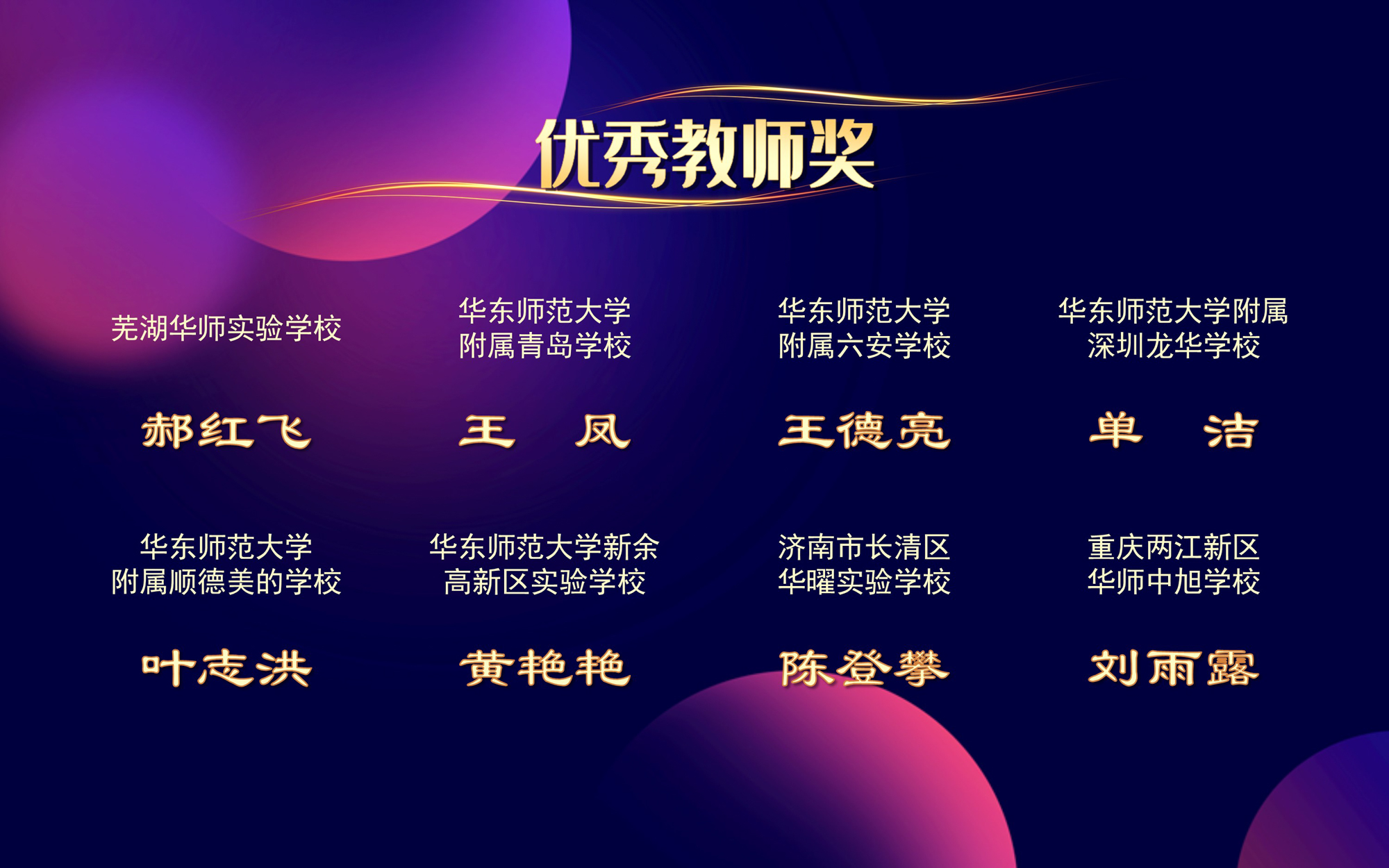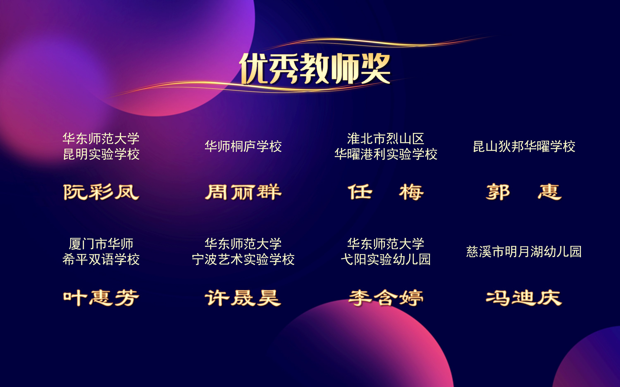 華東師大教育集團專家委員會主任楊德妹、莊輝明,華東師大副校長、教育集團主任戴立益,華東師大黨委常委、組織部部長兼機關黨委書記朱軍文,教育部中學校長培訓中心主任李政濤,華東師大教師教育學院院長代蕊華、出版社社長王焰、教師發展學院院長閆寒冰、招生辦公室主任周立旻,華東師大基礎教育與終身教育發展部副部長周賽君、韓楠,與集團成員校校長代表和獲獎教師共享節日喜悅。表彰會由周賽君主持,分“師澤如光”“師愛若水”“師心如初”三個篇章進行。