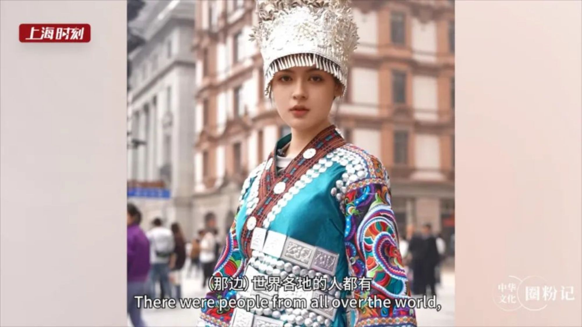 在游人如織的外灘、南京路步行街,她身著色彩靚麗、款式考究的中國民族傳統服飾,宛如穿越時空而來,秀出“最炫民族風”。