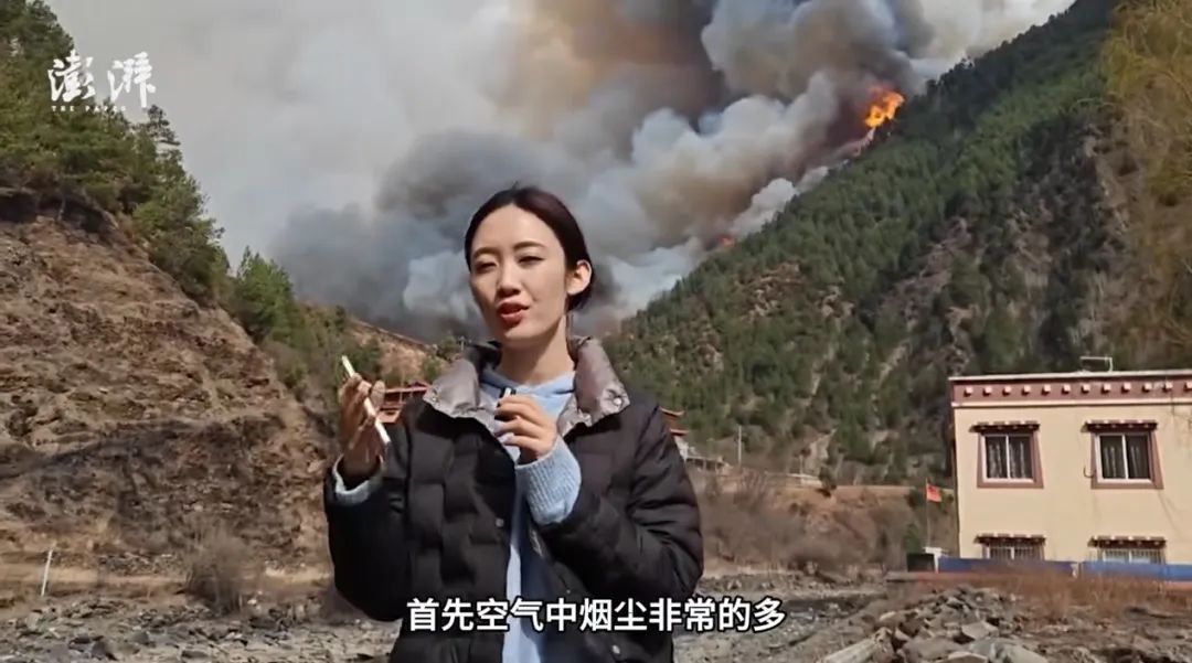2024年3月,2017級校友、澎湃新聞記者王瑞在四川甘孜州山火雅江火場核心區報道現場