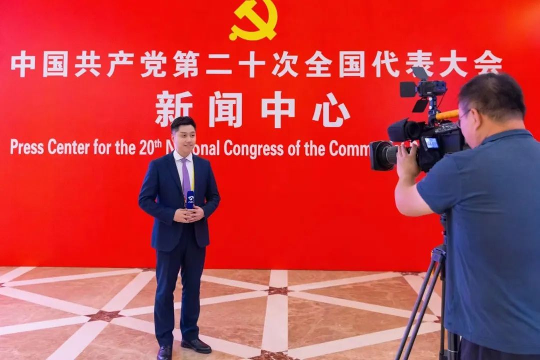 2022年10月,2009級校友、江蘇廣播電視總臺融媒體中心主任編輯、出鏡記者王堯報道中國共產黨第二十次全國代表大會現場