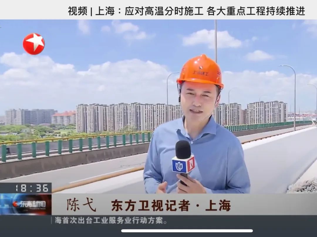 2024年8月,2005級陳弋校友、東方衛視記者,在高架工地報道高溫下各大重點工程推進情況