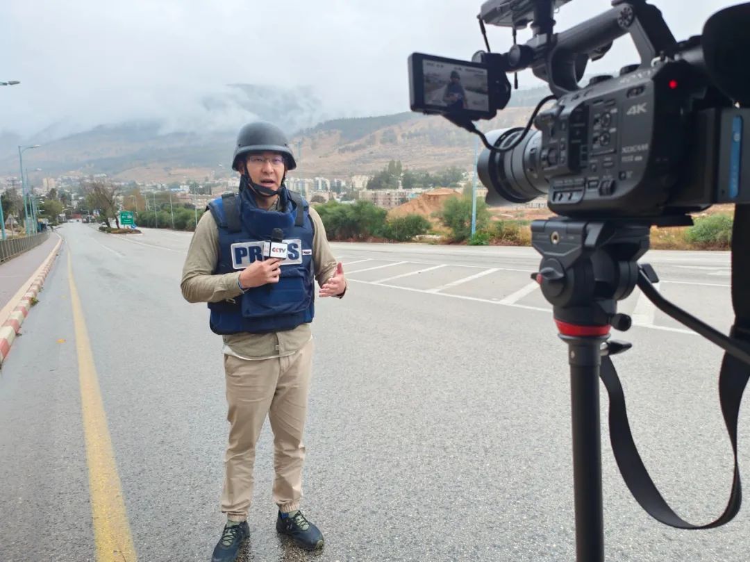 2023年11月,2005級校友、中央廣播電視臺總臺記者魏然在以色列北部邊界空襲現場附近直播報道