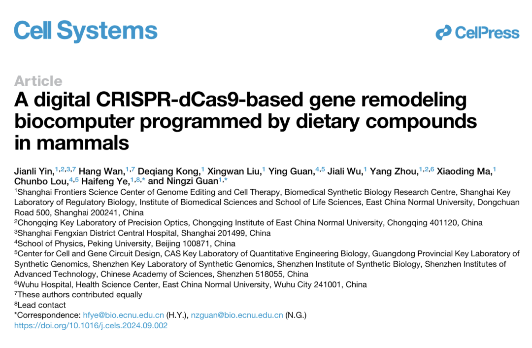 該成果以“A digital CRISPR-dCas9-based gene remodeling biocomputer programmed by dietary compounds in mammals”為題在Cell Systems上發表。