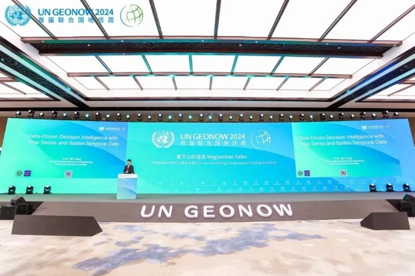 首屆聯合國地理空間知識與創新周于2024年10月21日在浙江德清開幕。此次地信周活動由聯合國全球地理信息知識與創新中心主辦,主題為“地理空間智慧造福世界”,聚焦地理空間信息應用場景創新交流研討。數據科學與工程學院楊彬教授受邀參加此次地信周“地理建模與人工智能(Geo-modeling and geospatial intelligence)”專題討論,并在莫干山對話上作了題為“Data Driven Decision Intelligence with Time Series and Spatio-Temporal Data”的主題報告,分享了數據學院在“時空智能”這一前沿方向上的最新學術進展。