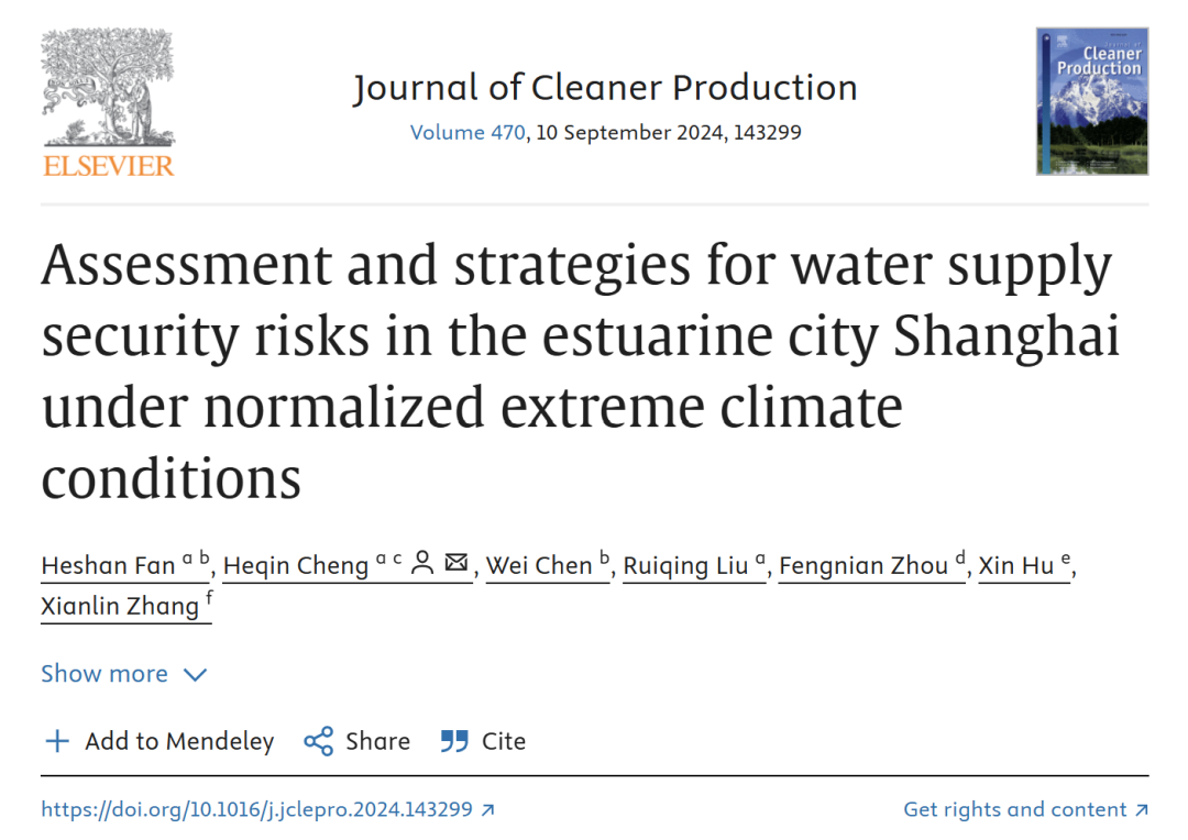 相關成果以“Assessment and strategies for water supply security risks in the estuarine city Shanghai under normalized extreme climate conditions”為題發表于Journal of Cleaner Production期刊上。