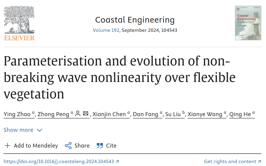 河口海岸學國家重點實驗室彭忠研究員科研團隊在植被-水沙-堤防耦合機制及海岸生態堤防技術方面取得新進展,闡明了植被區波浪非線性特征,揭示了鹽沼植被改變波浪間相互作用的機理,并提出了植被區波浪非線性的預測模型。相關成果以“Parameterisation and evolution of non-breaking wave nonlinearity over flexible vegetation”為題發表于領域頂刊Coastal Engineering。