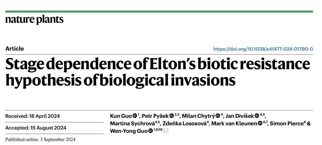 該研究豐富并拓展了60多年前“入侵生態學之父”Elton提出的經典生物多樣性阻抗假說的內涵。本研究也是該研究團隊“外來植物入侵動態過程多維作用機制”系列研究的又一項重要突破(2024年2月17日,華東師大科研團隊揭示外來植物的多維入侵機制)。