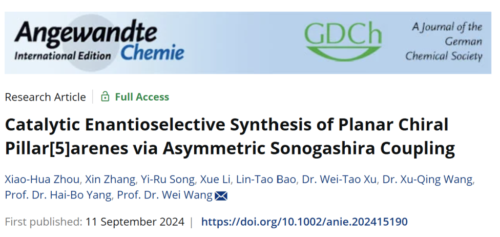 相關研究成果以“Catalytic Enantioselective Synthesis of Planar Chiral Pillar[5]arenes via Asymmetric Sonogashira Coupling”為題,發表在Angewandte Chemie International Edition期刊上。