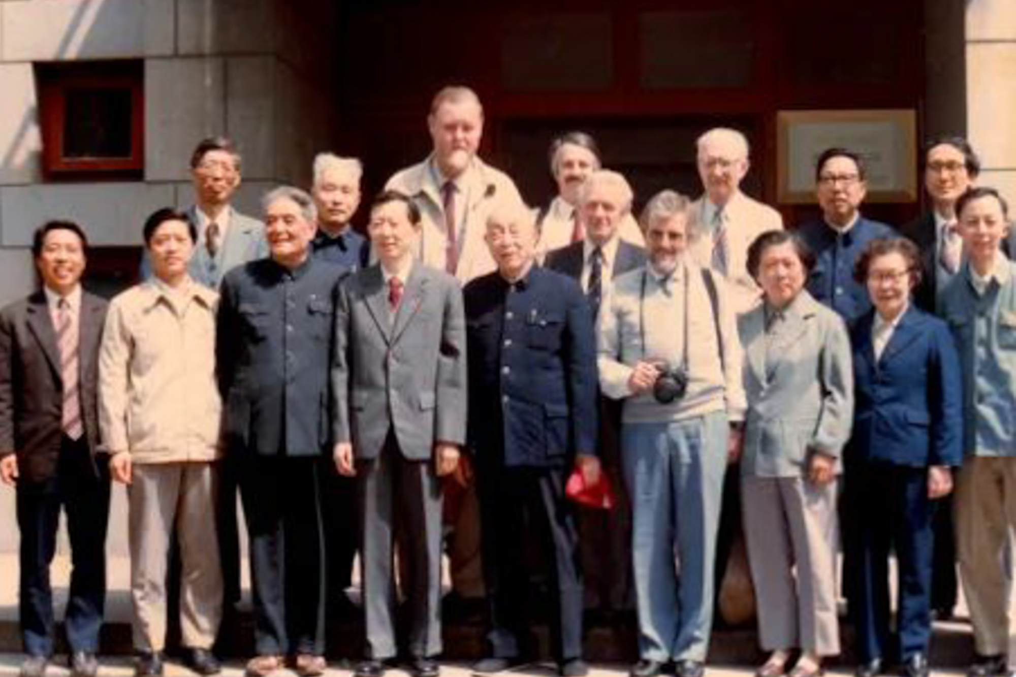 1980年代胡煥庸在華東師大校園理科三館前與師生合影