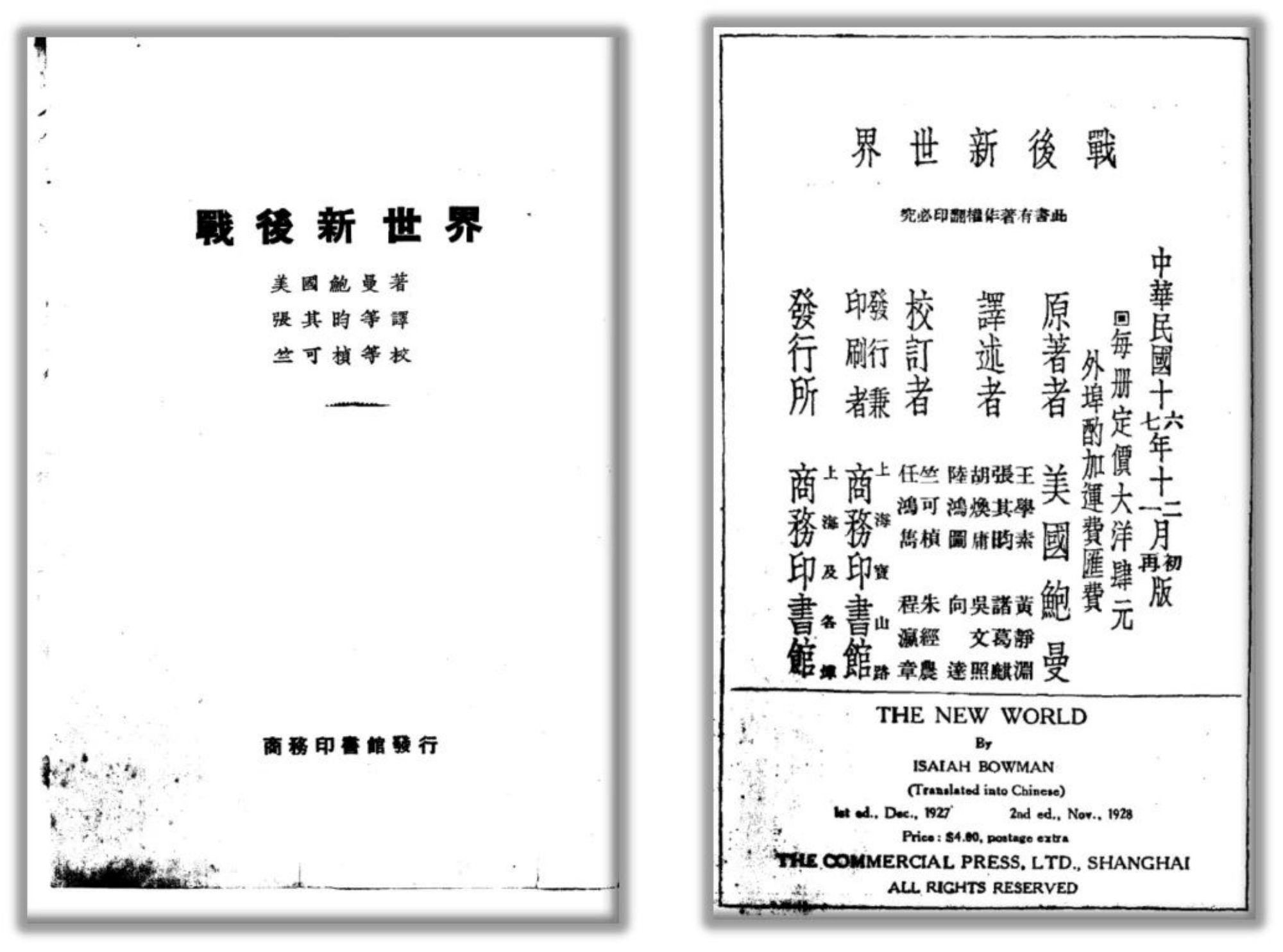 身為大學老師的竺可楨,“指導我們幾個同學把這本書翻譯成漢語,署名《戰后新世界》,在商務印書館出版,作為我們畢業的紀念。”值得一提的是,1922到1923年之間,胡煥庸還翻譯了詹姆斯·費爾格里夫的名作《地理與世界霸權》——近些年,這個胡煥庸百年前翻譯的版本,依然被多家出版社接連翻譯出版。