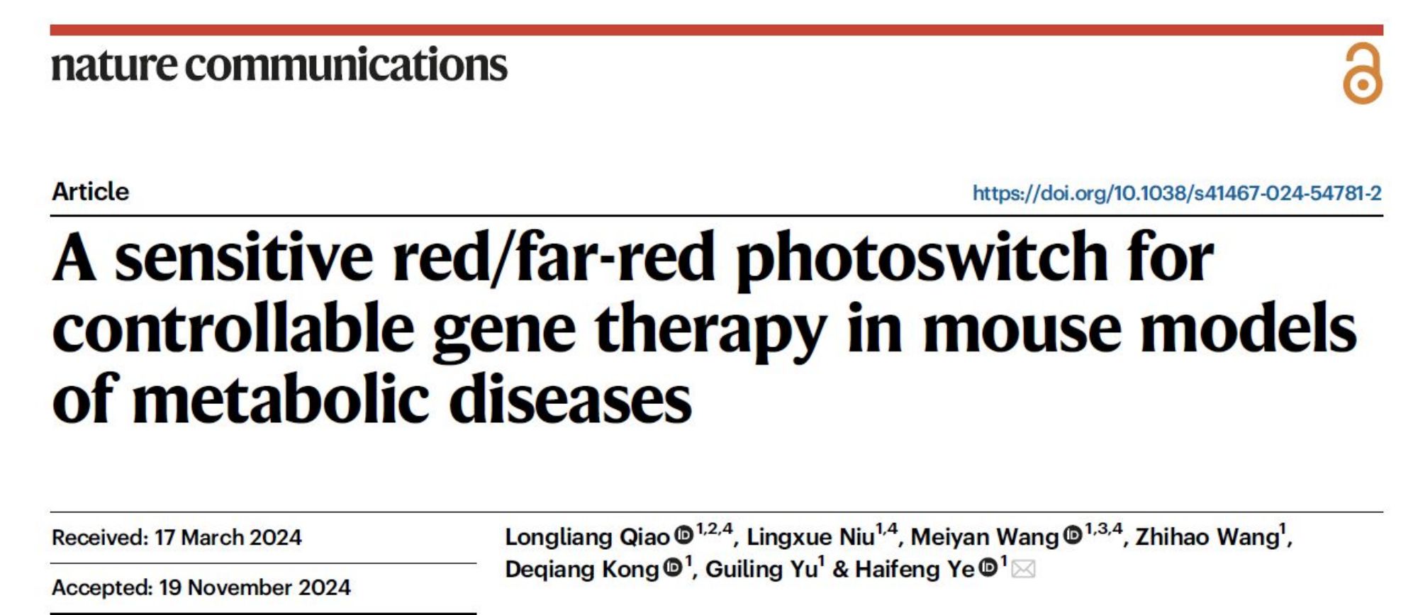 Nature Communications 刊發葉海峰團隊研究成果