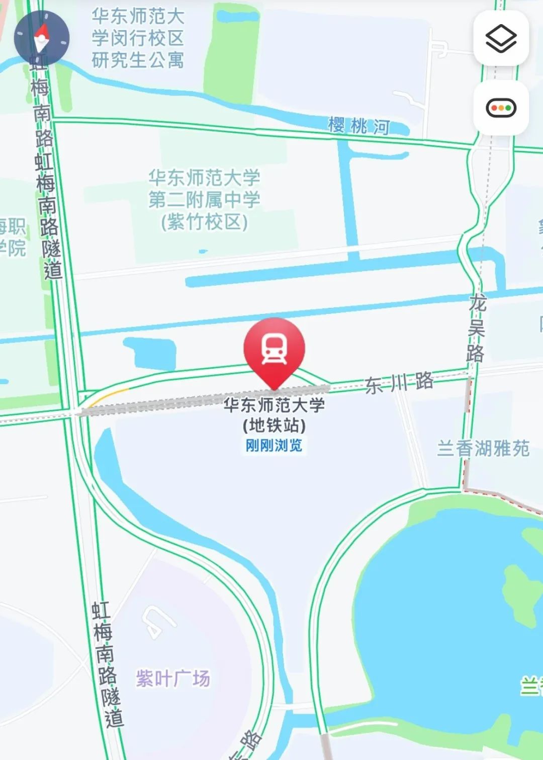 在華東師范大學閔行校區周邊,軌交15號線設有紫竹高新區站、蘭香湖南路站;軌交23號線設有華東師范大學站、交大紫竹路站、紫竹高新區站、紫龍路站。
