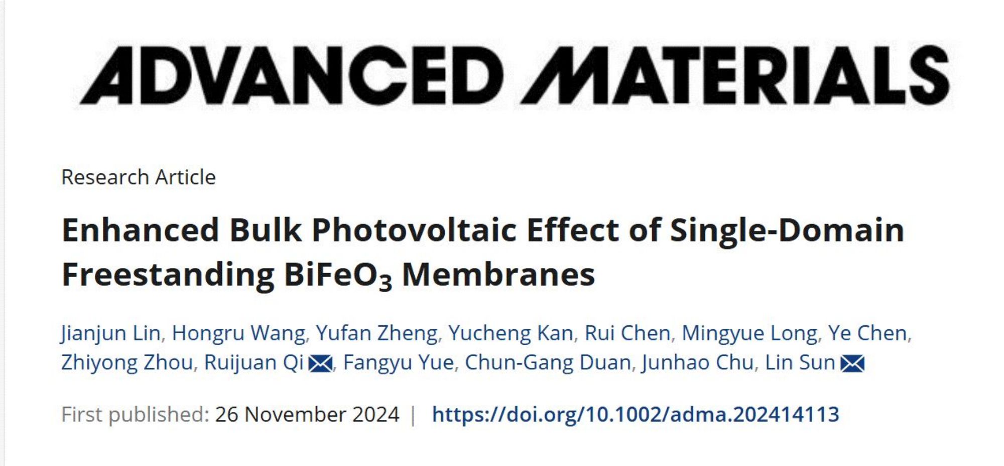 Advanced Materials 刊發華東師大物理與電子科學學院孫琳教授課題組研究成果