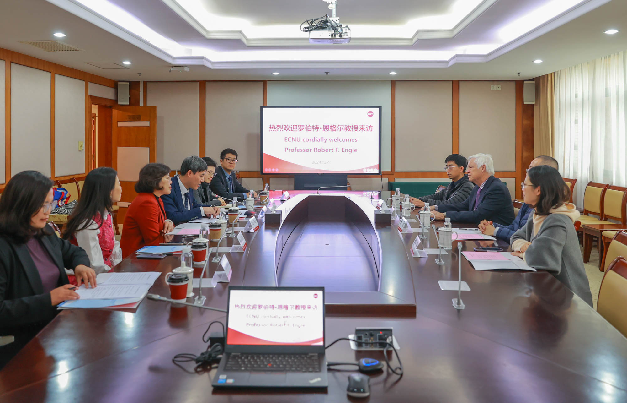 12月4日,諾貝爾經濟學獎得主、美國著名計量經濟學家、紐約大學斯特恩商學院羅伯特·恩格爾教授(Robert F. Engle)應邀來訪華東師大經濟與管理學院,并以“氣候風險及其對金融市場的影響”為主題為學院師生帶來一場精彩的學術講座。