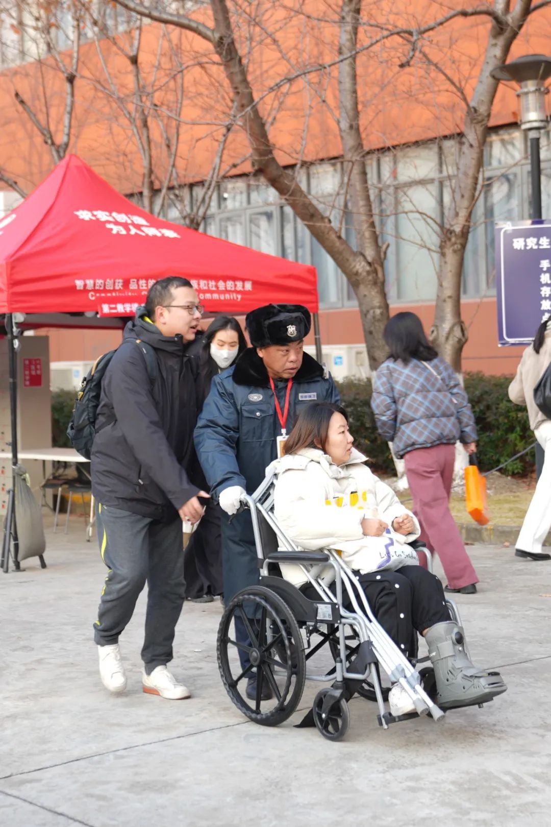 “骨折了怎么到校考試?”考點為行動不便的考生“保駕護航”,調(diào)換低樓層考場,安排“寬松”考位,協(xié)助入場,提供合理便利。