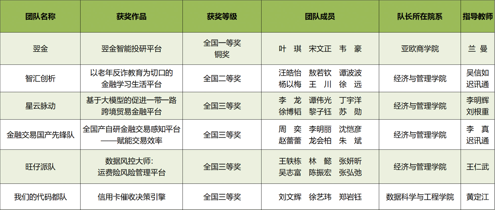 汪皓怡、敖若欽、楊以梅、王川、徐遠(經濟與管理學院),譚波波(計算機科學與技術學院)