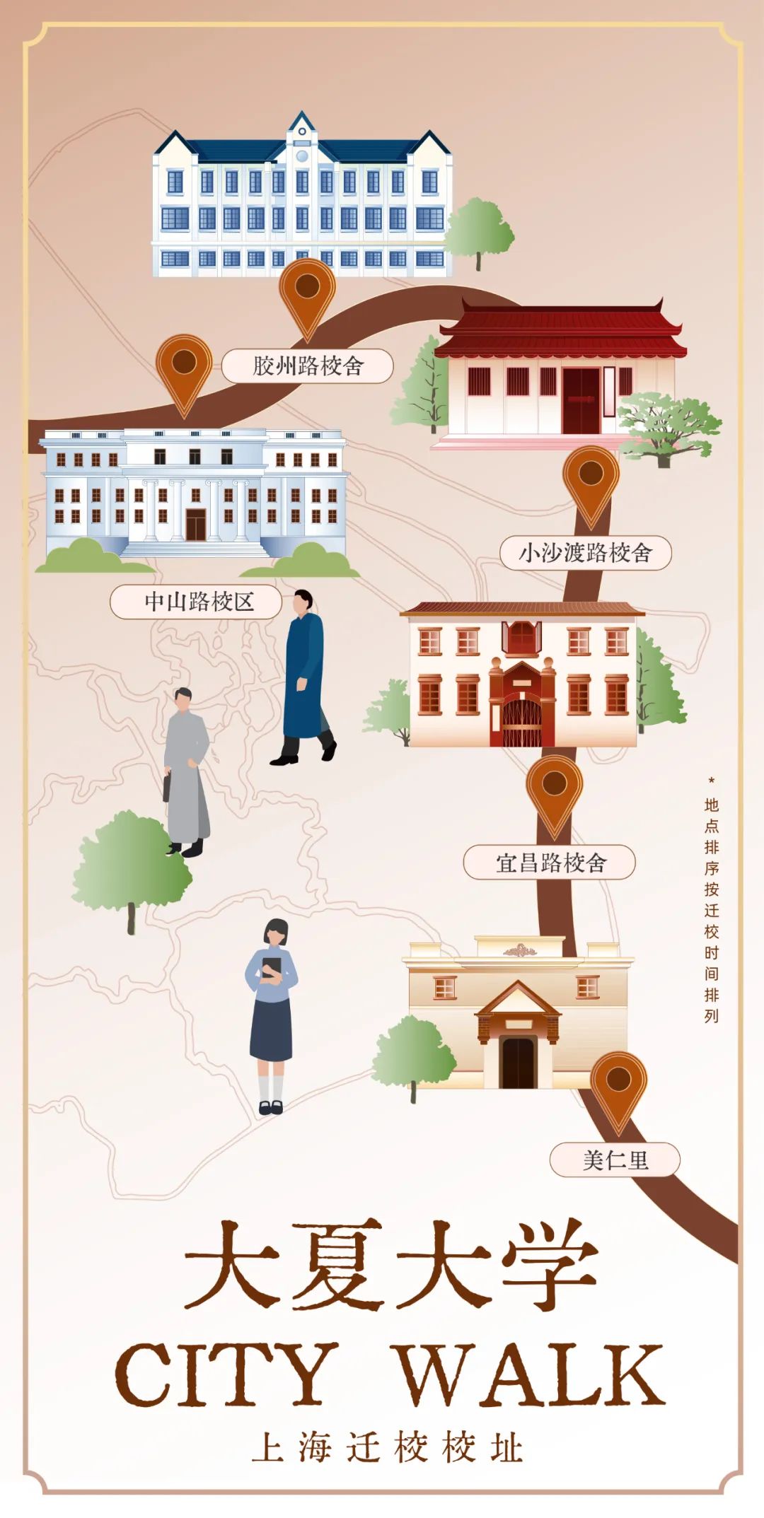 重走艱辛漫長的教育救國之路,重溫上世紀初中國知識分子的愛國之心。今年畢業季,大夏大學遷校citywalk,紀念卡片寫滿“大夏精神”,已伴隨2024屆畢業生奔赴祖國四方。