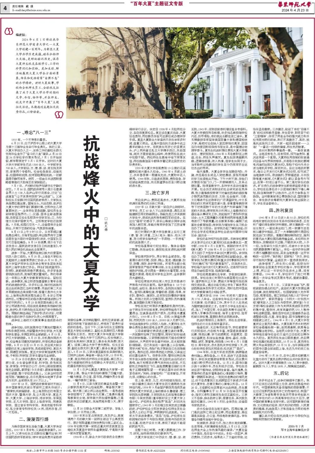 校報“百年大夏”專版