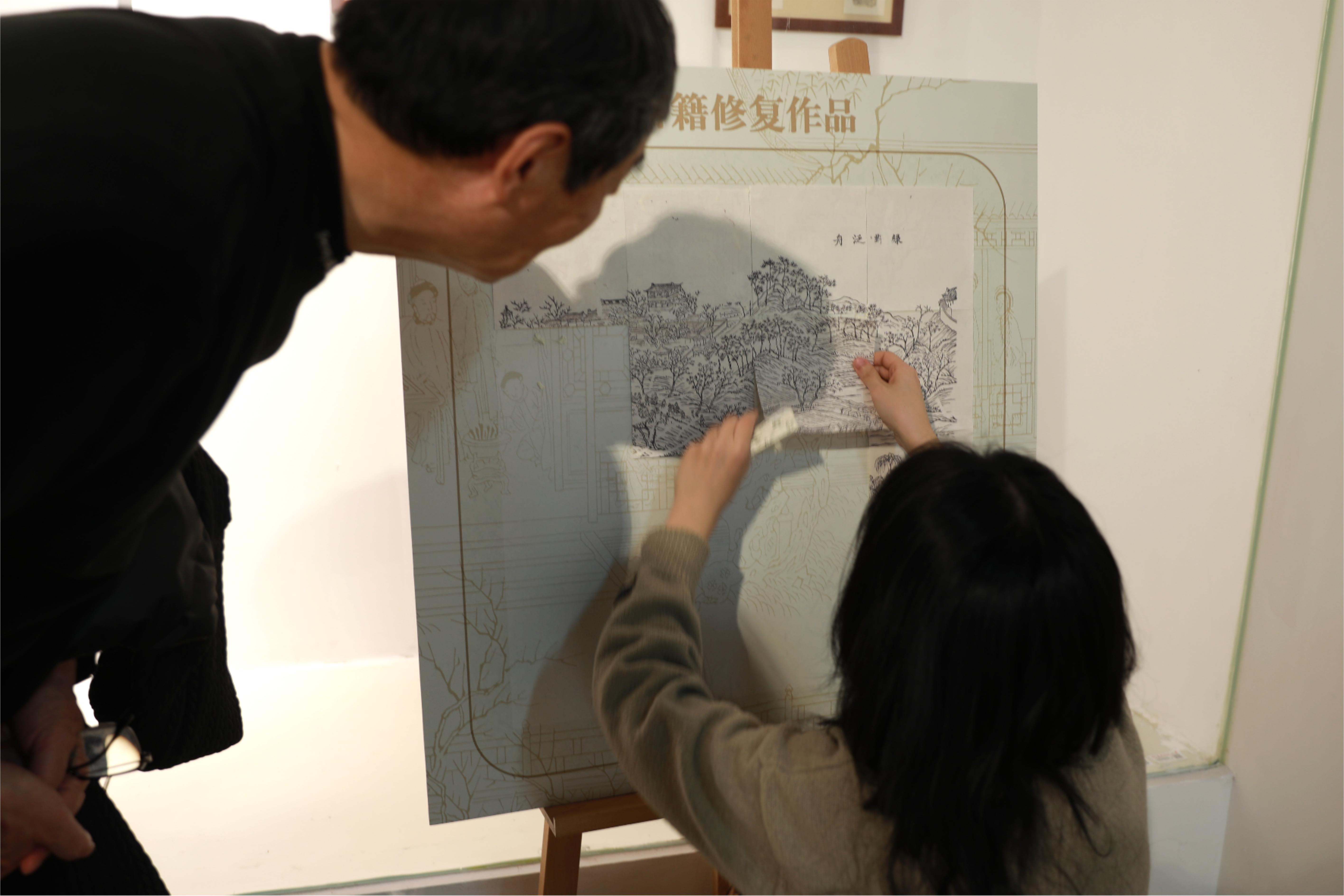 作為展覽的亮點(diǎn)之一,互動(dòng)工作坊為前來(lái)觀展的大中小學(xué)師生們提供了親身體驗(yàn)的機(jī)會(huì),在虛實(shí)的接筆間,真切感受古籍修復(fù)的魅力。
