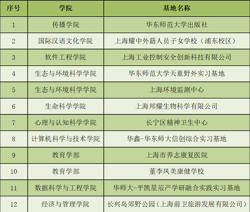 12個校級示范性實習基地