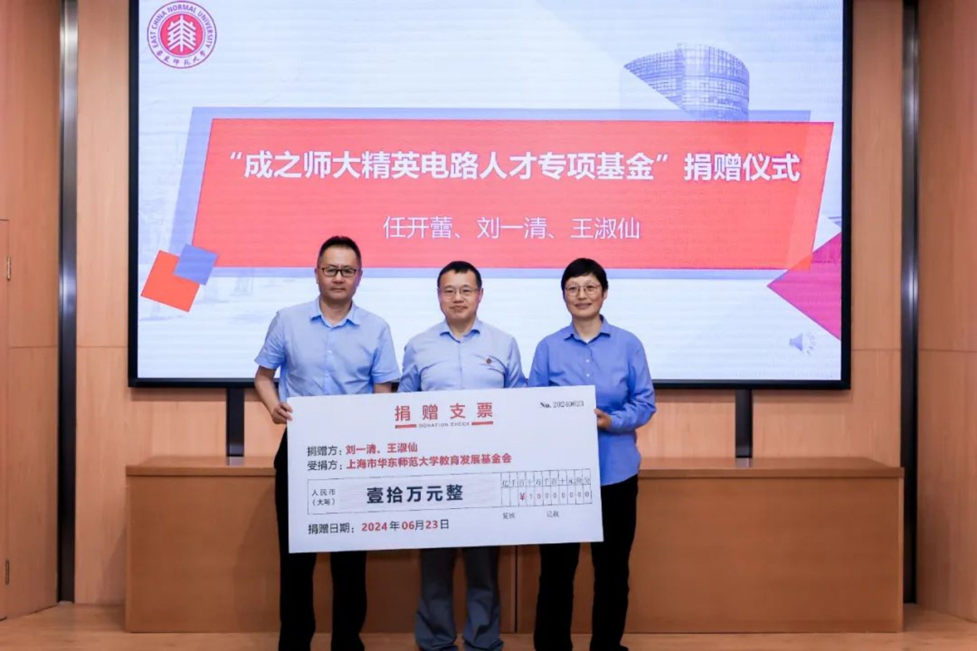 劉一清和華東師范大學國有資產管理處處長、通信與電子工程學院副教授王淑仙在通信工程精英班成立十周年的重要節點上慷慨解囊,牽頭設立“成之師大精英電路人才專項基金”,旨在支持通信工程精英班的發展,助力精英電路人才培養。