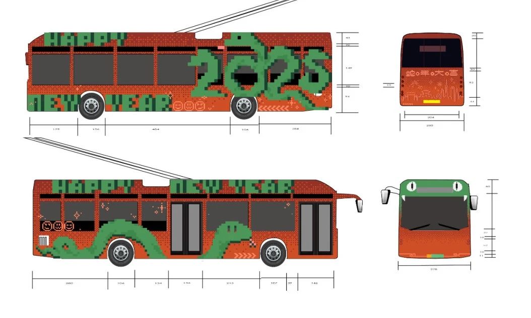 作品簡述:結合了上海和蛇年的元素來設計車身,左側用四只小蛇組合成“2025”的字樣,右側選取了上海地標建筑進行設計。
