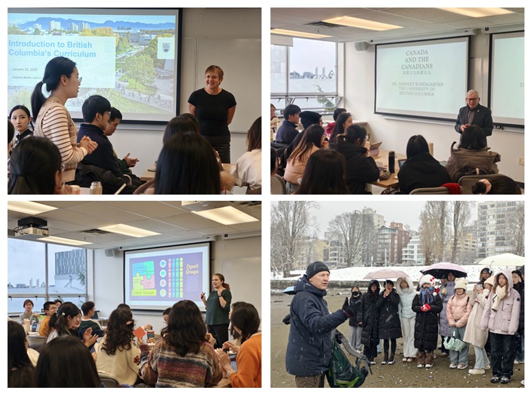 1月20日-2月10日,華東師大第十四期“卓越教師培養計劃”師范生研修項目在加拿大英屬哥倫比亞大學(簡稱UBC)舉辦。40名各專業師范生遠赴加拿大,開展為期三周的學習交流。本次研修聚焦教育理念與實踐的深度碰撞,師范生全面學習了當地基礎教育體系,參與教學案例設計與分析,實地參訪中小學,深入一線探究課堂教學,并與教育專家展開對話,在跨文化體驗中拓寬教育視野,提升教師素養。