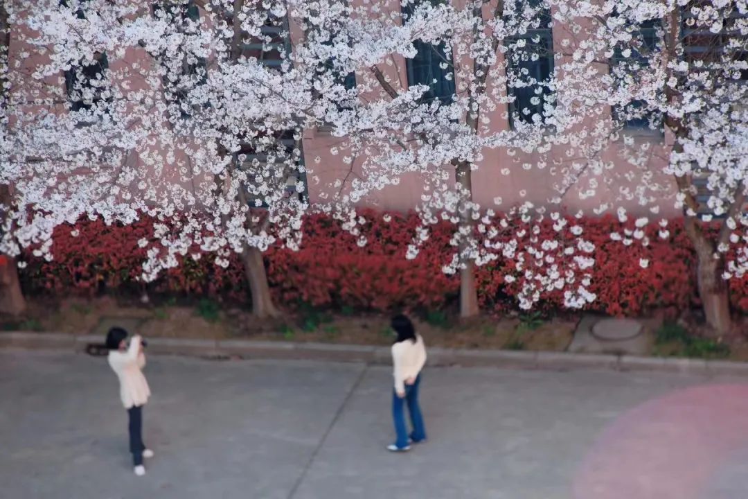 全國范圍冷空氣突然到訪,雖打落不少花瓣,卻不能阻擋櫻花的爛漫。風(fēng)雨后的它們?cè)谥︻^傲然挺立,積蓄力量,待雨過天晴,陽光灑下,晚櫻品種又將接力綻放。本周末,歡迎入校賞春,和這場(chǎng)限定“櫻花雨”撞個(gè)滿懷!