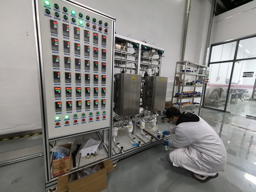 華東師大科研人員在固定床反應器旁取樣。俞陶然攝