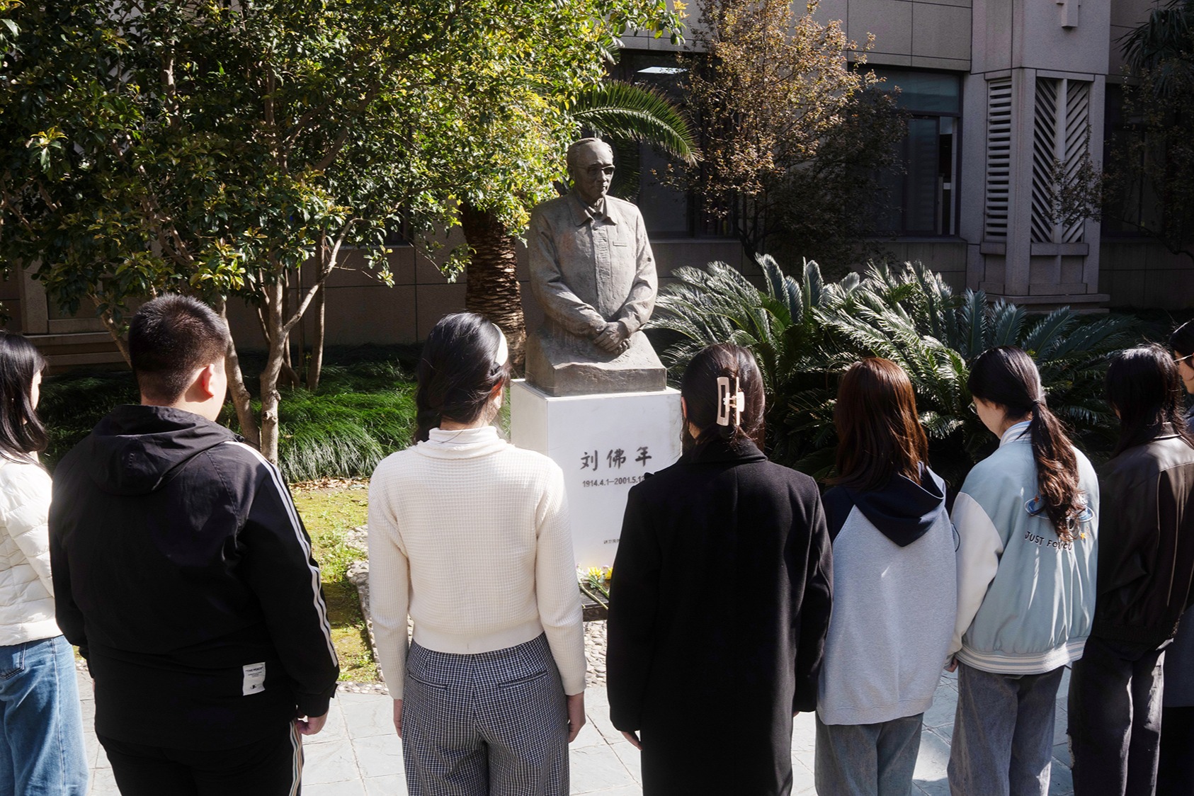 立三尺講臺(tái),謀百年樹人。在劉佛年老校長(zhǎng)的銅像前,師生代表手持素帕擦拭銅像,大家敬獻(xiàn)鮮花,垂首靜默,在春風(fēng)中寄托對(duì)教育先賢的追思。