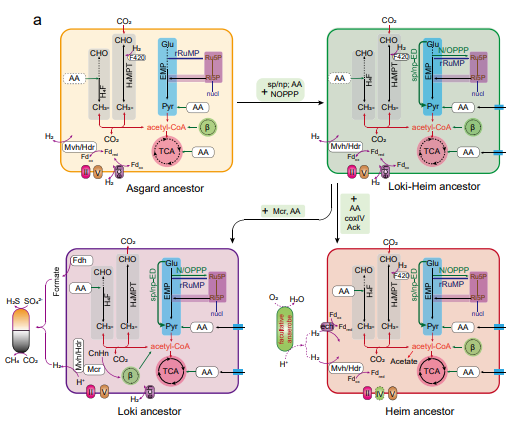 圖3 關(guān)鍵阿斯加德古菌祖先的代謝功能重建