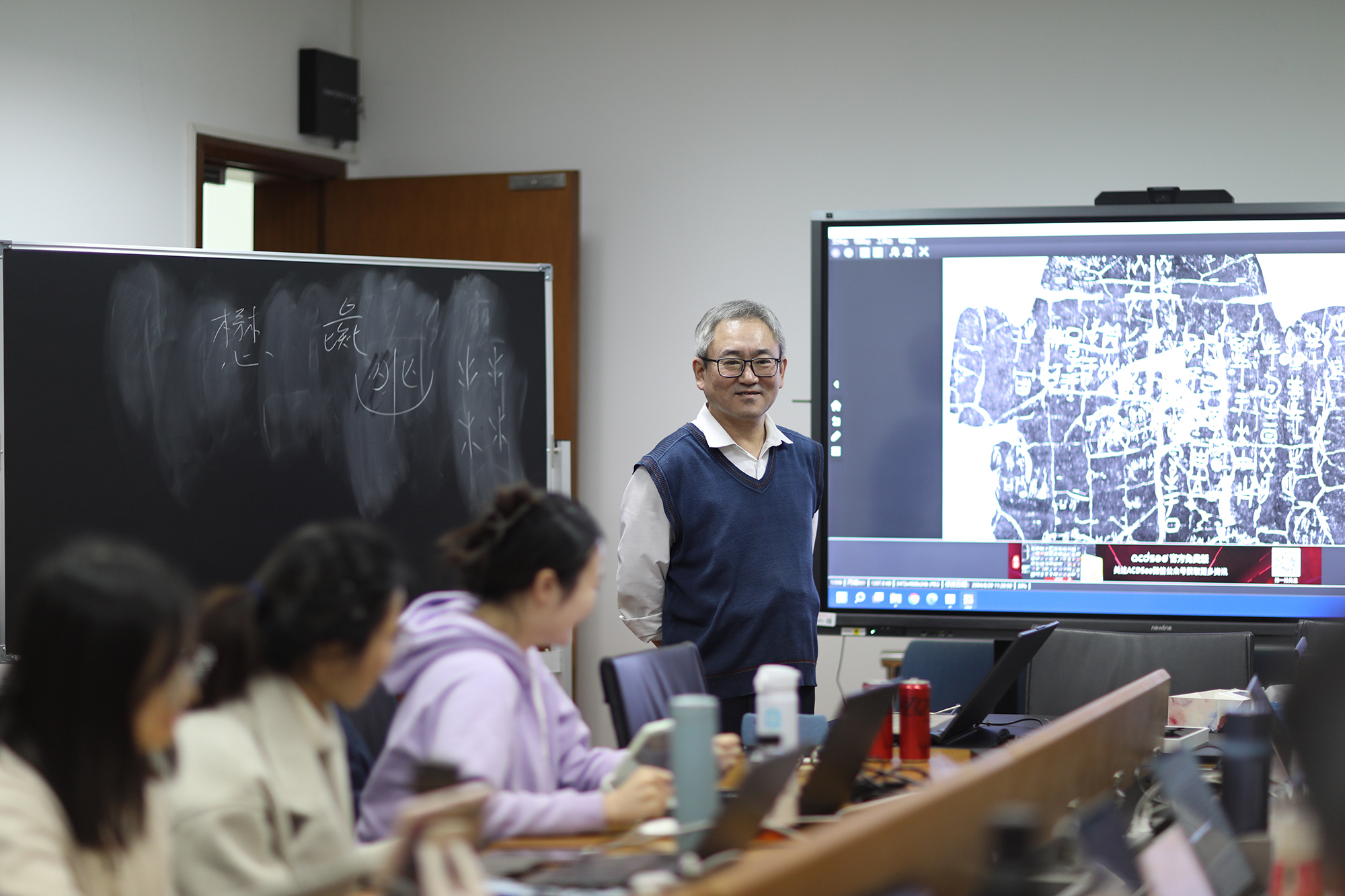 白于藍為華東師范大學古文字學方向強基班開設“訓詁學”課程。授課時,他喜歡帶著學生們玩“文字偵探游戲”,探究每一個古文字的造字“動機”,帶領他們探索文字的“前世今生”。