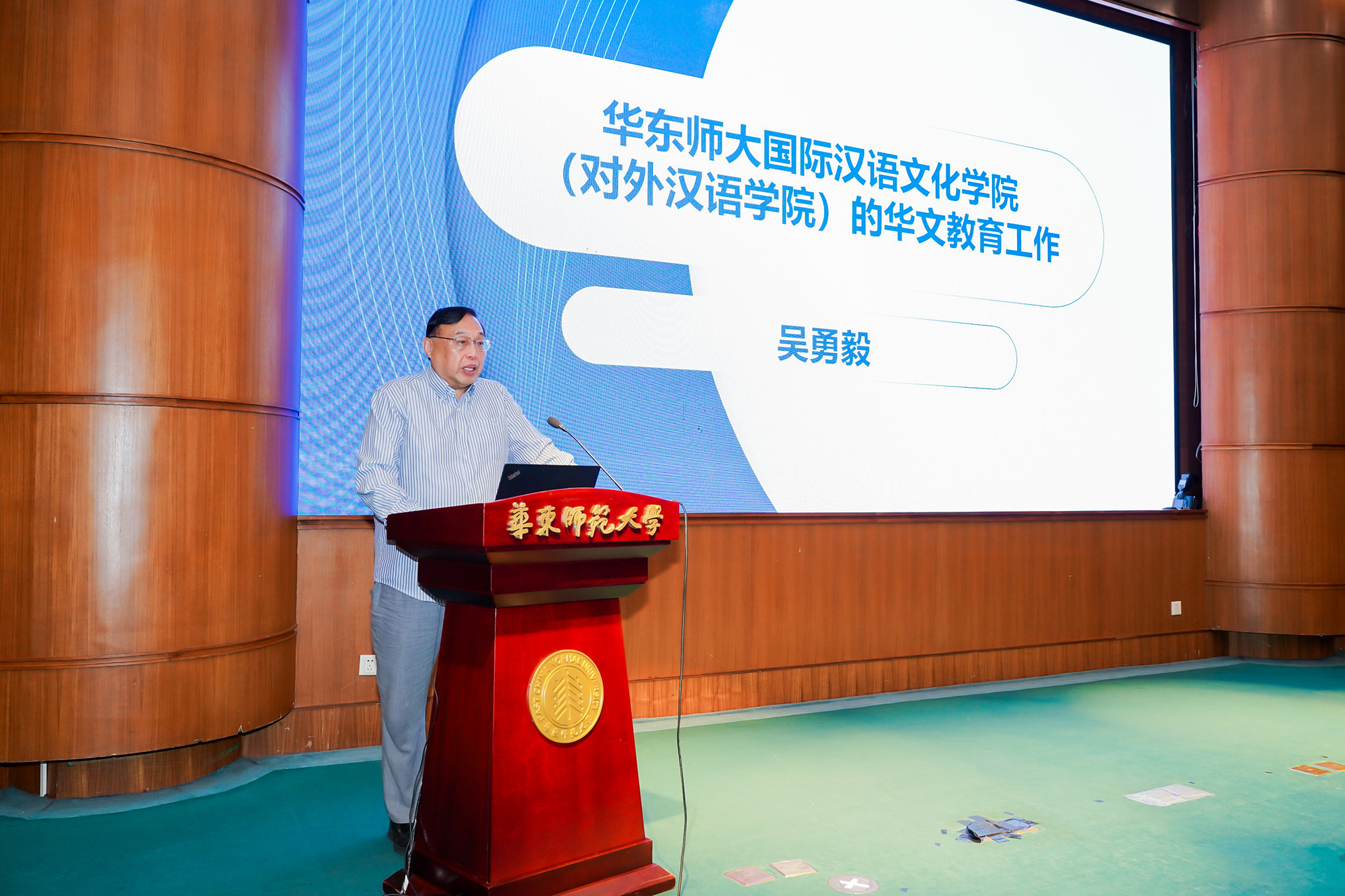 國務院僑辦專家咨詢委員會委員、校國際漢語文化學院吳勇毅教授從根魂筑基、研教深耕、全球協作、教材突破等方面介紹了華東師范大學在全球華文教育領域的引領性工作。